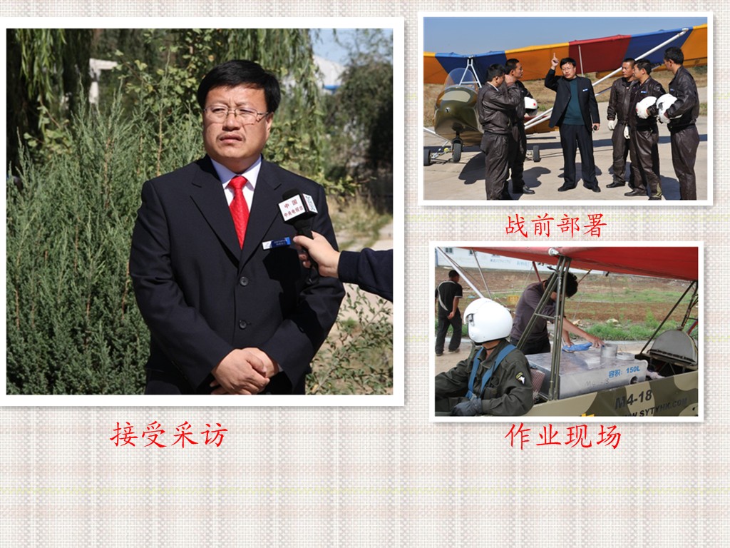 ,而是毅然決然的走上里一條充滿艱辛的打拼之路,在別人笑之為天方夜譚的情況下,1999年四處投親靠友籌集資金從北京航空航天大學(xué)購(gòu)進(jìn)了一架蜜蜂4超輕型飛機(jī),與此同時(shí)它成就了內(nèi)蒙古自治區(qū)第一個(gè)私人擁有飛機(jī)的人,飛機(jī)有了,他東奔西走,開始學(xué)習(xí)、探索、研究制作超輕飛機(jī)飛機(jī)播種和飛機(jī)滅蟲設(shè)備,經(jīng)過(guò)4年的反復(fù)試驗(yàn),終于在2003年設(shè)備試驗(yàn)成功,但沒(méi)有相關(guān)手續(xù)私人飛機(jī)不允許私自飛行,于是成立航空公司的想法在心中勾畫,他開始了中國(guó)第一家超輕型飛機(jī)通用航空公司的籌建工作,一己之力不可成江河,于是他伙同一直支持他的妻子四處請(qǐng)專家、找能人,終于在2006年經(jīng)過(guò)三年努力國(guó)家民航華北地區(qū)管理局為其頒發(fā)了通用航空公司籌建許可證,于是他又四處籌措資金,投入到籌建工作之中,2008年六月經(jīng)民航華北地區(qū)管理局驗(yàn)收合格并頒發(fā)通用航空運(yùn)營(yíng)許可,與此同時(shí)他的飛機(jī)播種、飛防滅蟲兩項(xiàng)實(shí)用新型專利獲得通過(guò),國(guó)家知識(shí)產(chǎn)權(quán)局頒發(fā)了實(shí)用新型知識(shí)產(chǎn)權(quán)證書。(鏡頭七)設(shè)備特寫(包括專利證書)邱志剛一個(gè)不屈不撓的東北漢子,在平凡的人生道路上創(chuàng)造了不平凡的業(yè)績(jī),創(chuàng)造了不平凡的人生價(jià)值。創(chuàng)造了人生的豪邁與神奇。