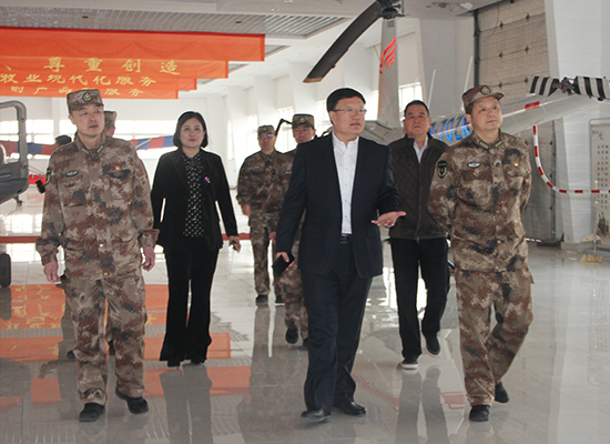 4月15日下午,為深入貫徹習(xí)近平主席“平戰(zhàn)結(jié)合”強軍思想發(fā)展戰(zhàn)略,內(nèi)蒙古軍區(qū)動員局局長白曙光、參謀付劍鋒,政治工作局干事李艷雷,在通遼軍分區(qū)司令員閆德峰、政委饒崇書、動員處處長劉波一行陪同下到內(nèi)蒙古神鷹航空集團就推動國防動員和國防后備力量建設(shè)高質(zhì)量發(fā)展進行現(xiàn)場檢查指導(dǎo)工作,內(nèi)蒙古神鷹航空集團董事長邱志剛、總經(jīng)理司治莊、常務(wù)副總經(jīng)理孫學(xué)慧等領(lǐng)導(dǎo)陪同參觀。